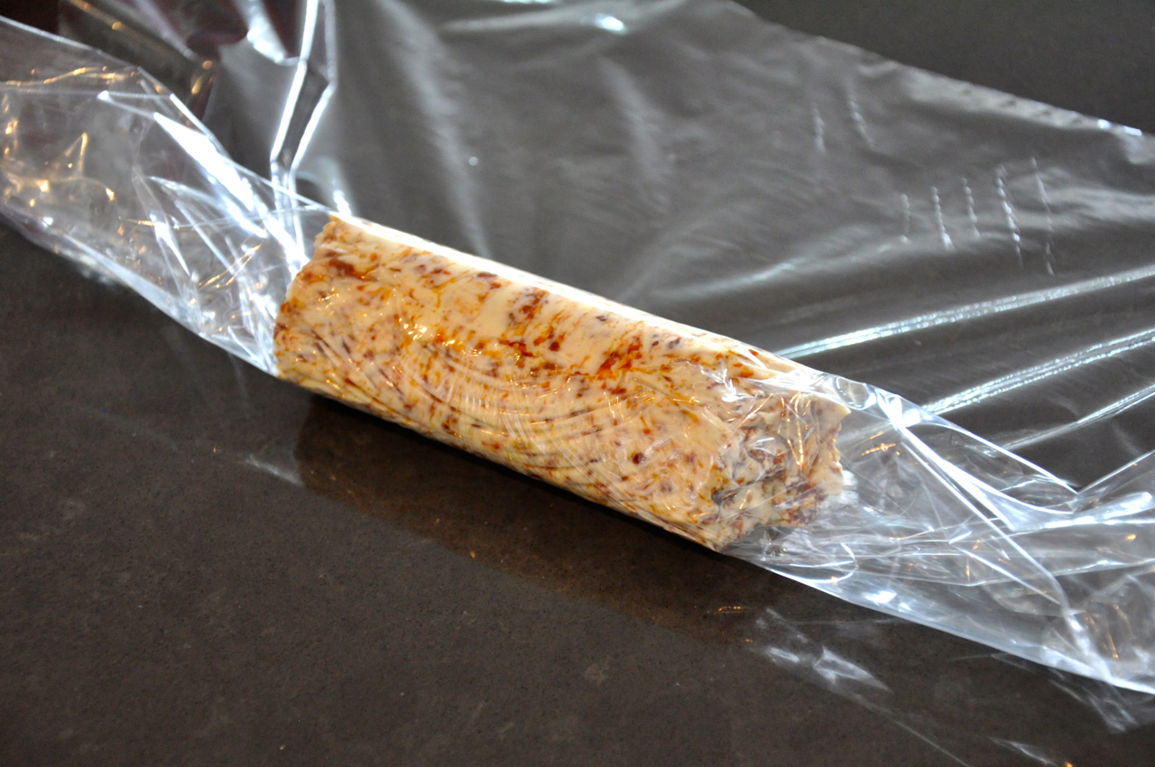 - Shape into a log on plastic wrap, roll, seal and chill in a refrigerator for 2 hours.