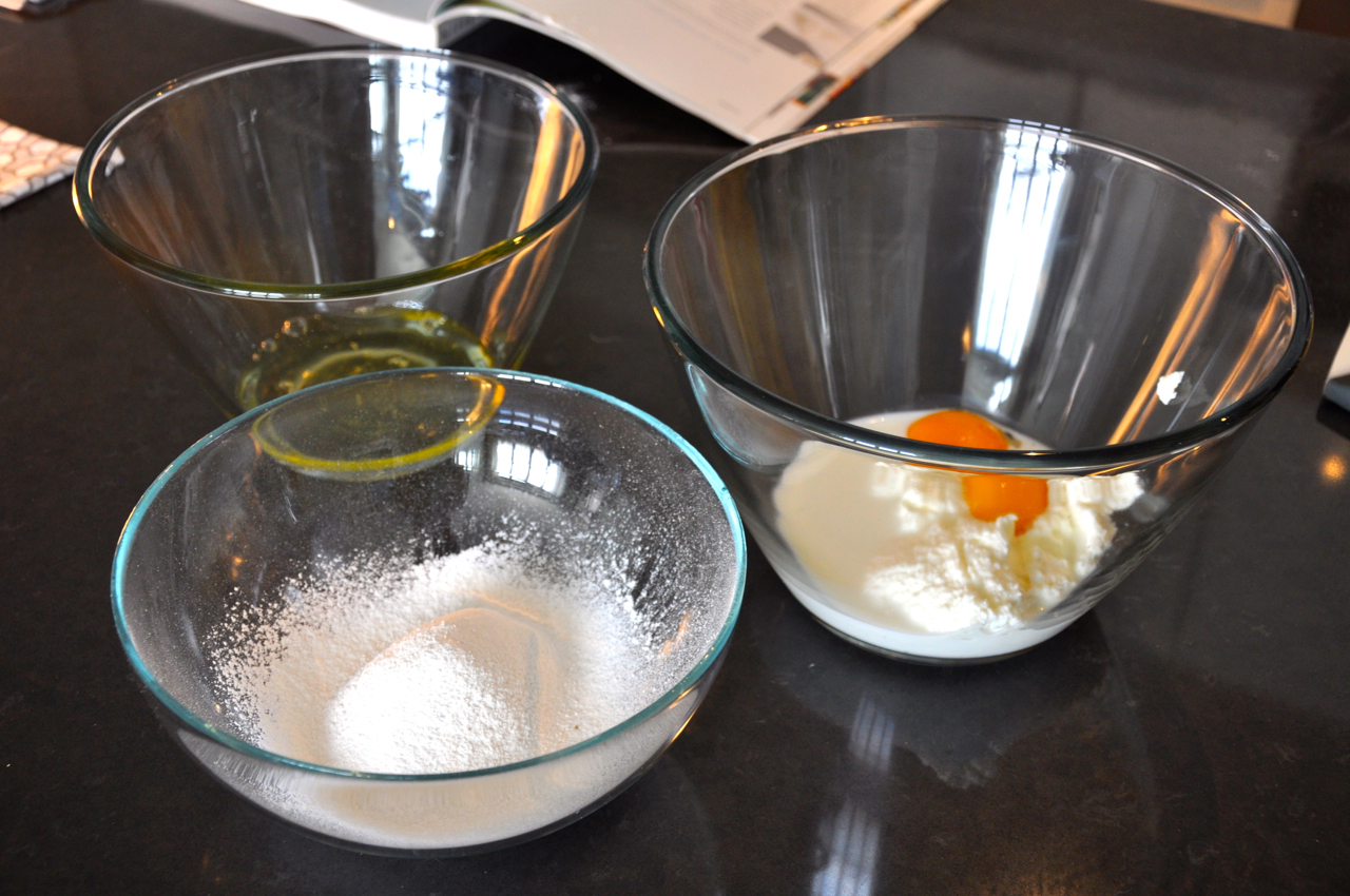 Separate your eggs. Combine yolks, milk and ricotta in one bowl. Sift your flour and salt in another bowl. Add the flour to your ricotta mixture.