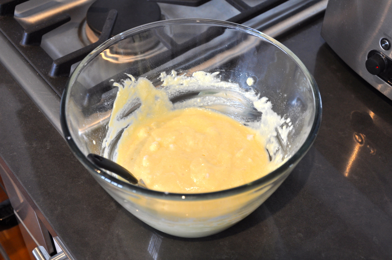 - Fold egg whites through batter in two batches, with a large metal spoon.