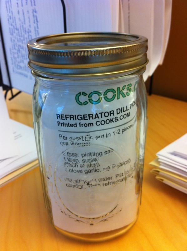 After that LES festival and all the free samples you could want I really developed a taste, no craving for pickles. But at that stage I was more interested in the consumption and not so much creation of pickled goodness. All that changed after a great little gift from a friend who picked up on my keen interest in pickles. One year she had no choice but to start pickling all the cucumbers that grew in her garden. She didn’t know what else to do with them. I bombarded her with so many questions.  “How do you do it? What kind of equipment do you need? How long does it take? Is this process related to canning? Will I make myself sick if I mess up a step?” She assured me that it was quite a simple process and then one day she surprised me with a little pickle gift. She brought me everything I’d need to make my own pickles, all tucked into a cute 1 quart jar and the rest is history. Thanks BD!