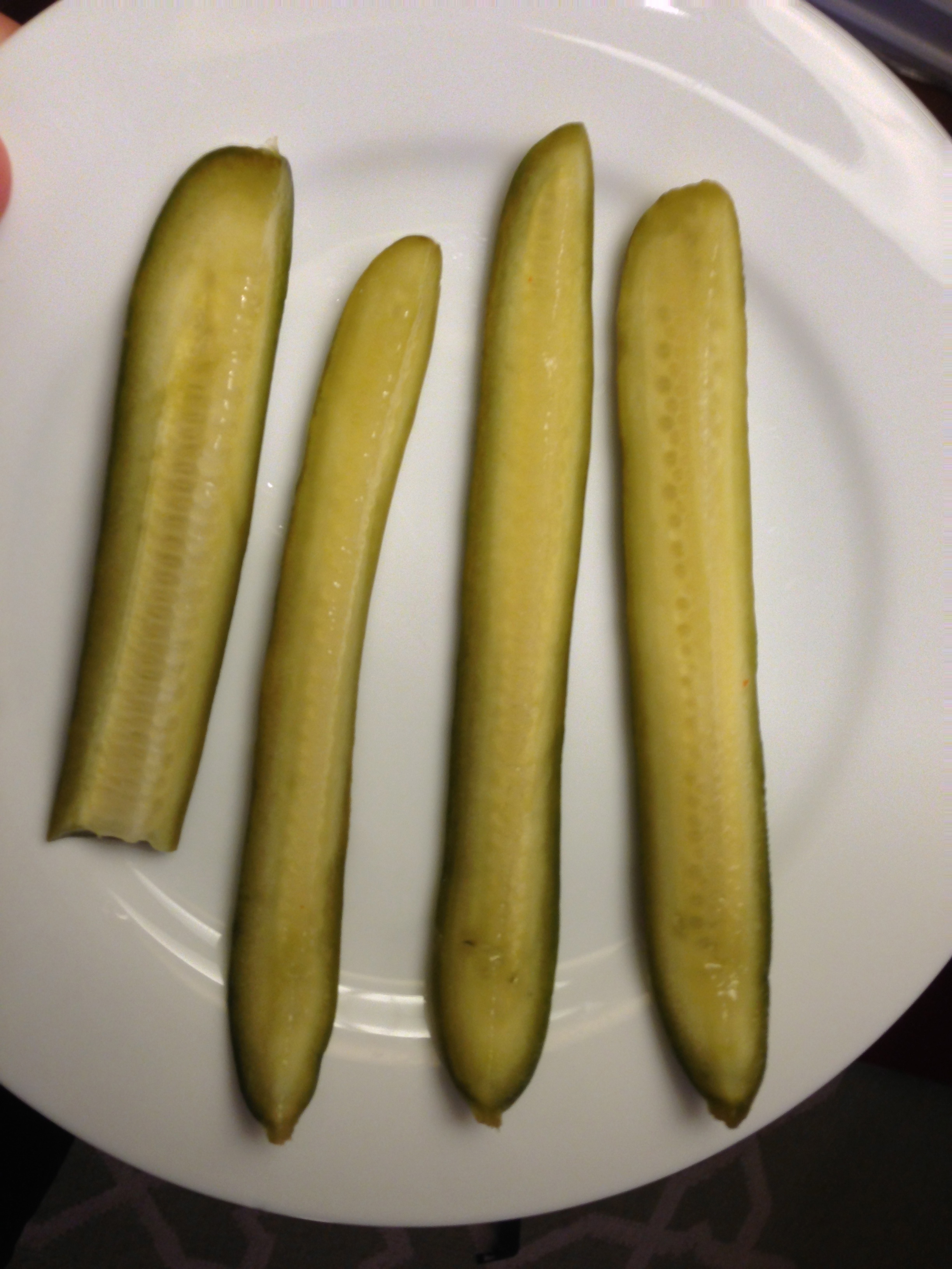 1. Slice up the cucumbers into spears (4 per cucumber)